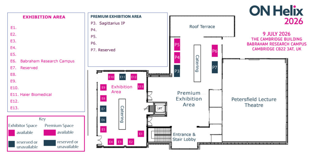 Exhibition – stands E1-E13, you can bring a pull-up banner (maximum 1.5m wide and 3m high). A table (standard 5ft table, not clothed) and 2 chairs will be provided. If you would like to send us a copy of your stand design/plans in advance to check, please email onhelix@onenucleus.com